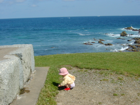 尻屋崎の記念碑の下で