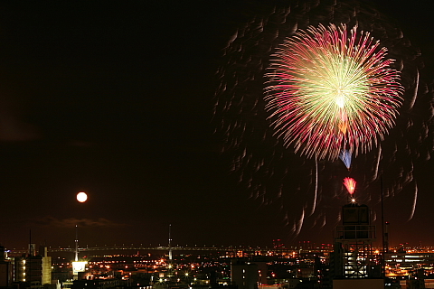 上の写真は8/1の「横浜の花火」です。満月でした。