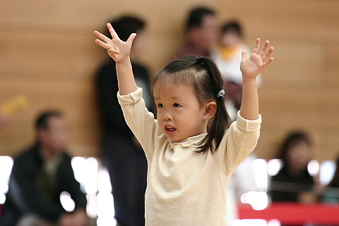 たくさんの観客に緊張したのか泣いたり、泣きべそ状態で