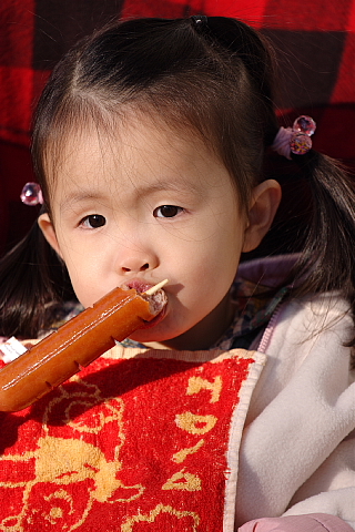 終わったら「にこにこ」で、「フランクフルト」にかぶりつきです。
