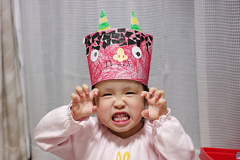 節分の日、保育園で「鬼のお面」を作ってきました。