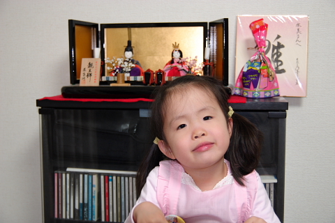 足元には「みなみ」が保育園で作ったお雛様。