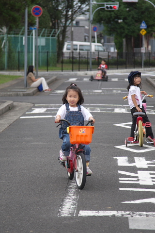 交通公園の自転車にも慣れてすいすいと乗っています。