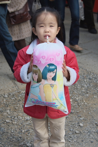 お参り前から、屋台の綿飴を見つけ、