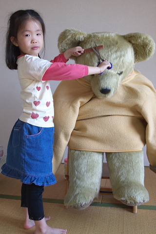 くまのぬいぐるみ(みなみは「くまこ」と呼んでいます)相手に