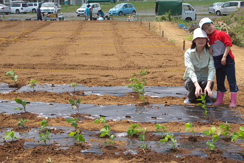 枝豆、なす、レタス、きゅうり、ピーマン、トマトを植えました。