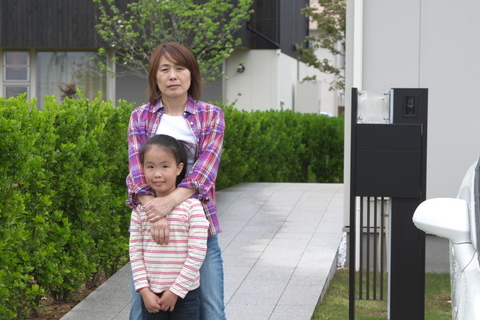 家の前で