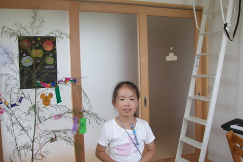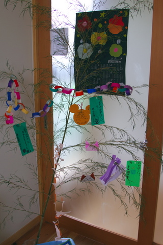 「笹の葉」に願い事を書いて飾りました。