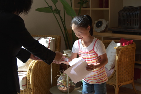 副賞の「食べられる組立式の家」にみなみはにんまりです。