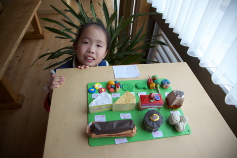 紙や粘土でケーキや駄菓子を作っていました。
