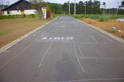 家の前にチョークで6階建て?の家を書いたりして遊んでいました。