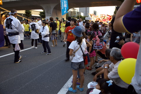 子供たちは「鈴」を貰う為に沿道の先頭に立っています。