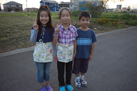お互いのママに分からないように「こっそり」とエプロンを縫ってプレゼントしました。