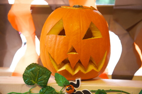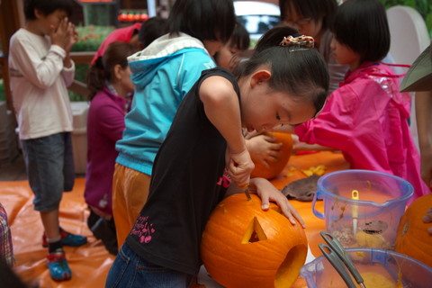 到着早々、カボチャの「ジャック・オー・ランタン」作りをしました。