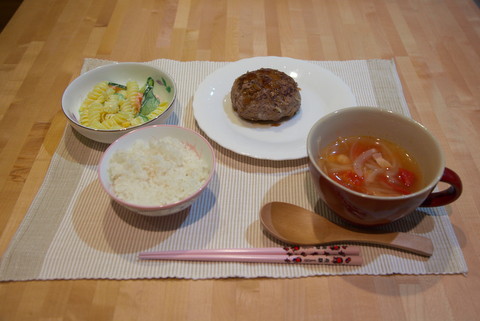 みなみは、「ハンバーグ」「トマトスープ」「マカロニサラダ」を作りました。