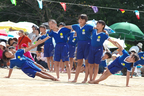 今年の5年・6年生の合同の演技は「組体操」です。