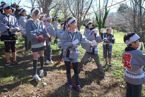 5年生になると、6年生と「綱火」を行いました。